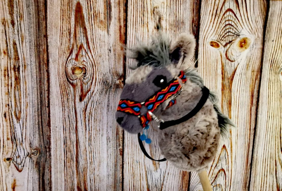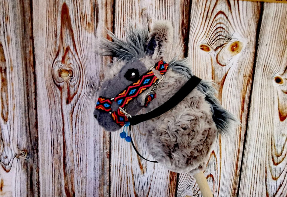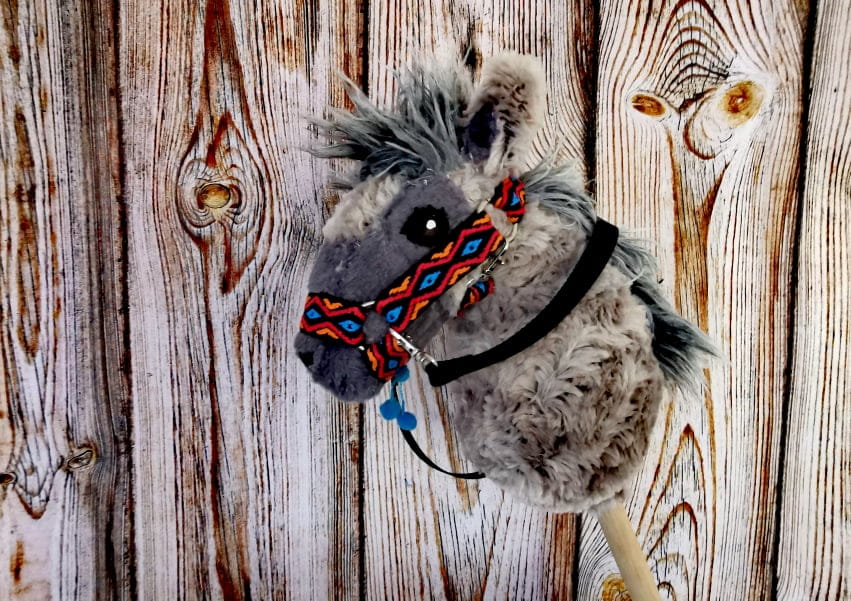 Alpaka jest gotowa do zmiany domu z zestawem który ma na sobie. Możesz również dokupić derkę lub pokrowiec wybierając zestaw w zakładce Akcesoria dla Hobby Horse.
