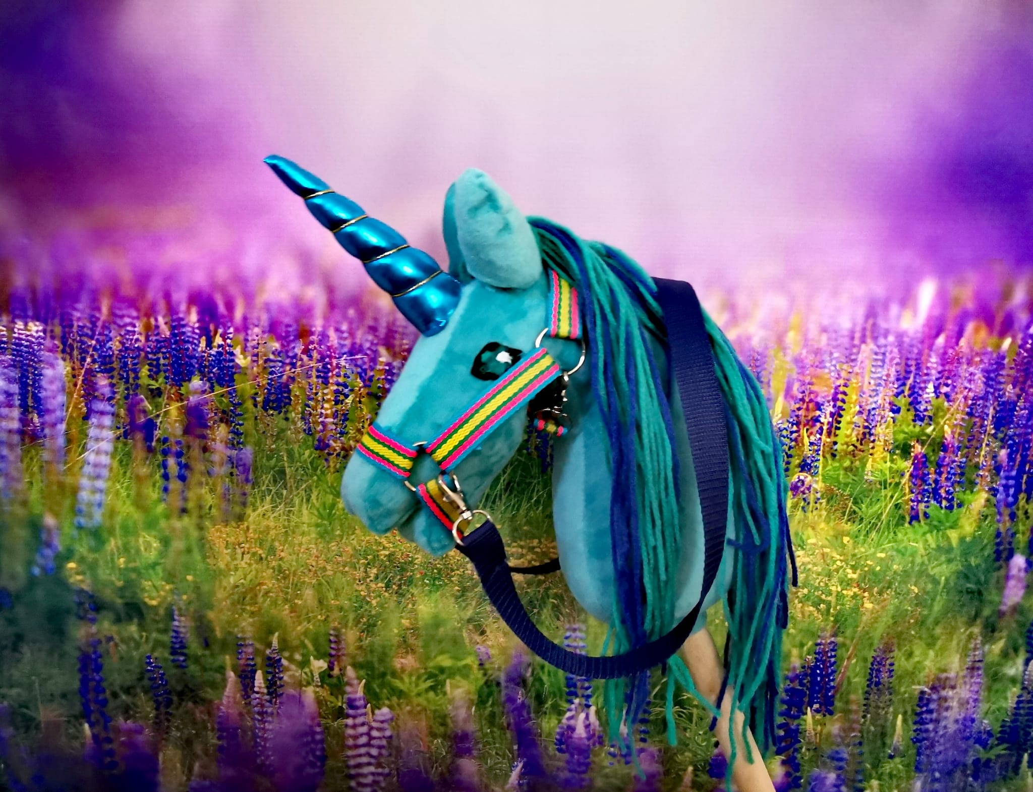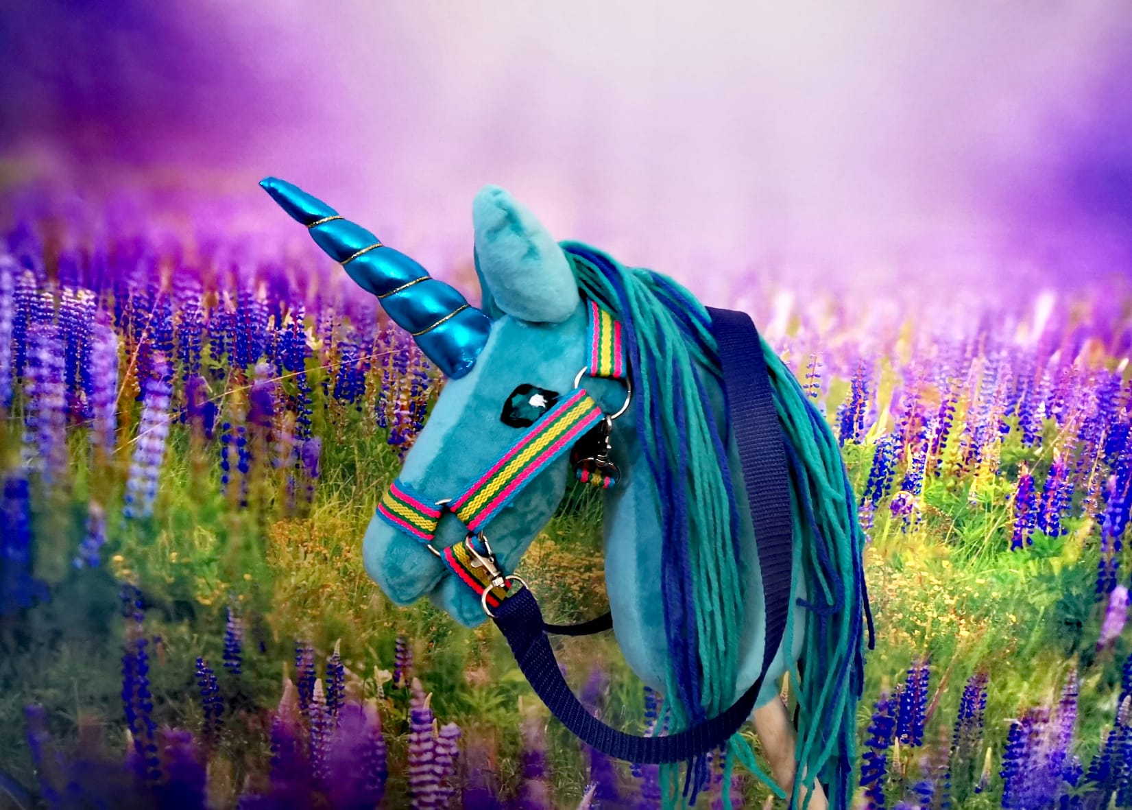 Konik jest już w komplecie z ogłowiem i wodzami tak jak na zdjęciu każdy jednorożec ma unikalny kolor ogłowia.