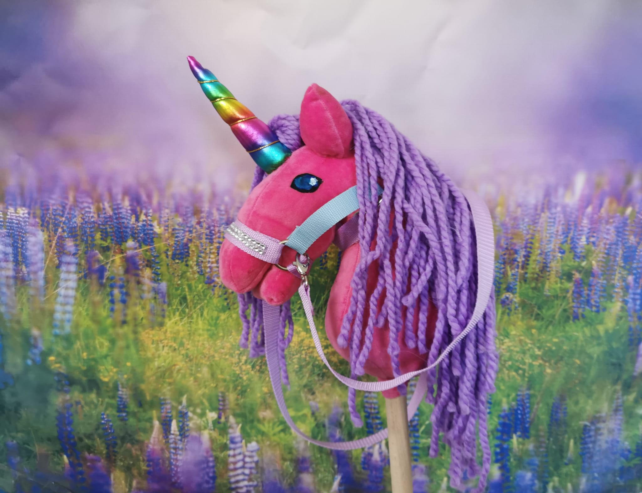 Konik jest już w komplecie z ogłowiem i wodzami tak jak na zdjęciu każdy jednorożec ma unikalny kolor ogłowia.