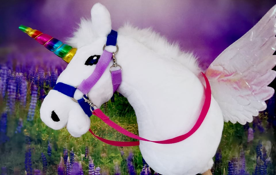 Konik jest już w komplecie z ogłowiem i wodzami tak jak na zdjęciu każdy jednorożec ma unikalny kolor ogłowia.
