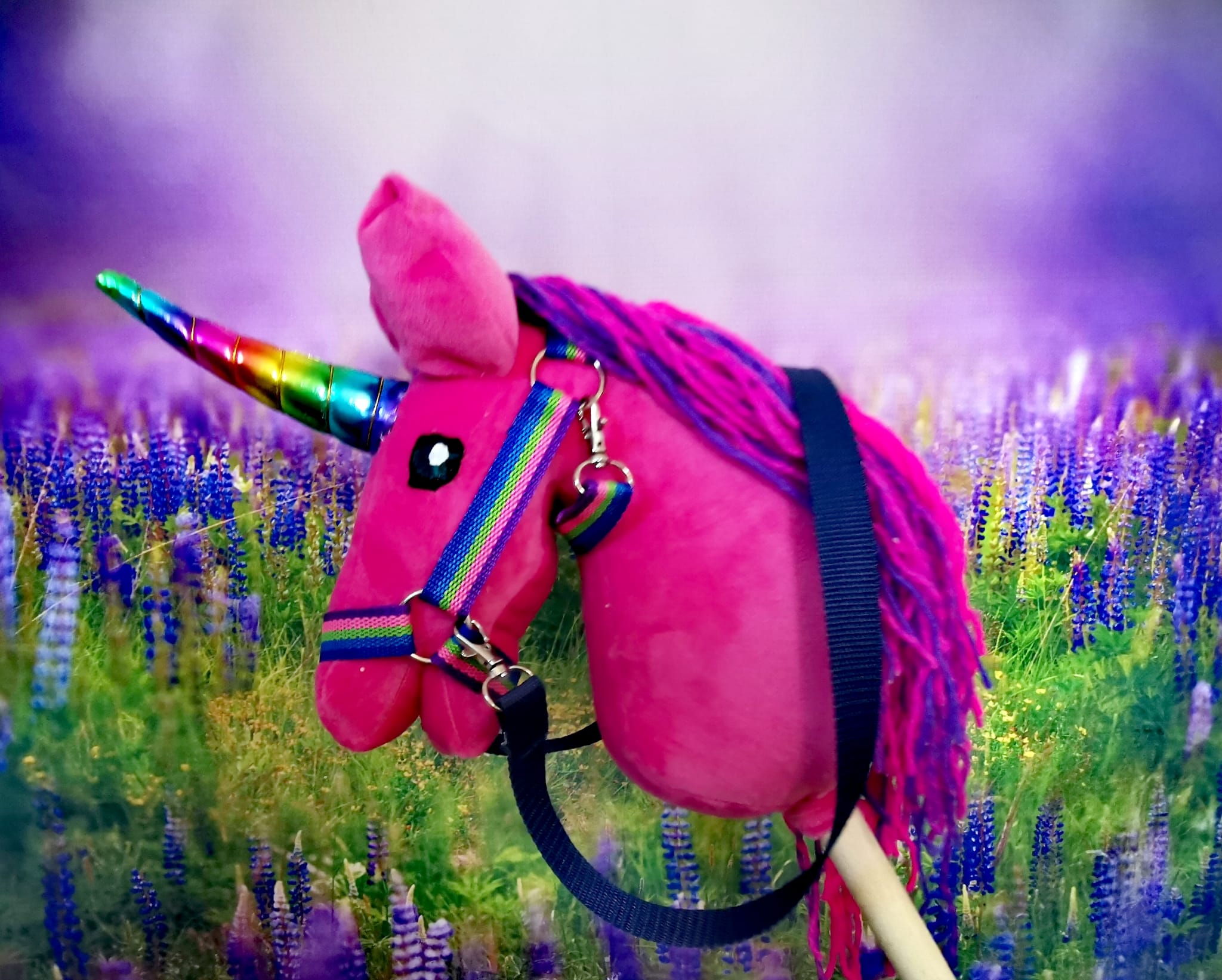 Konik jest już w komplecie z ogłowiem i wodzami tak jak na zdjęciu każdy jednorożec ma unikalny kolor ogłowia.
