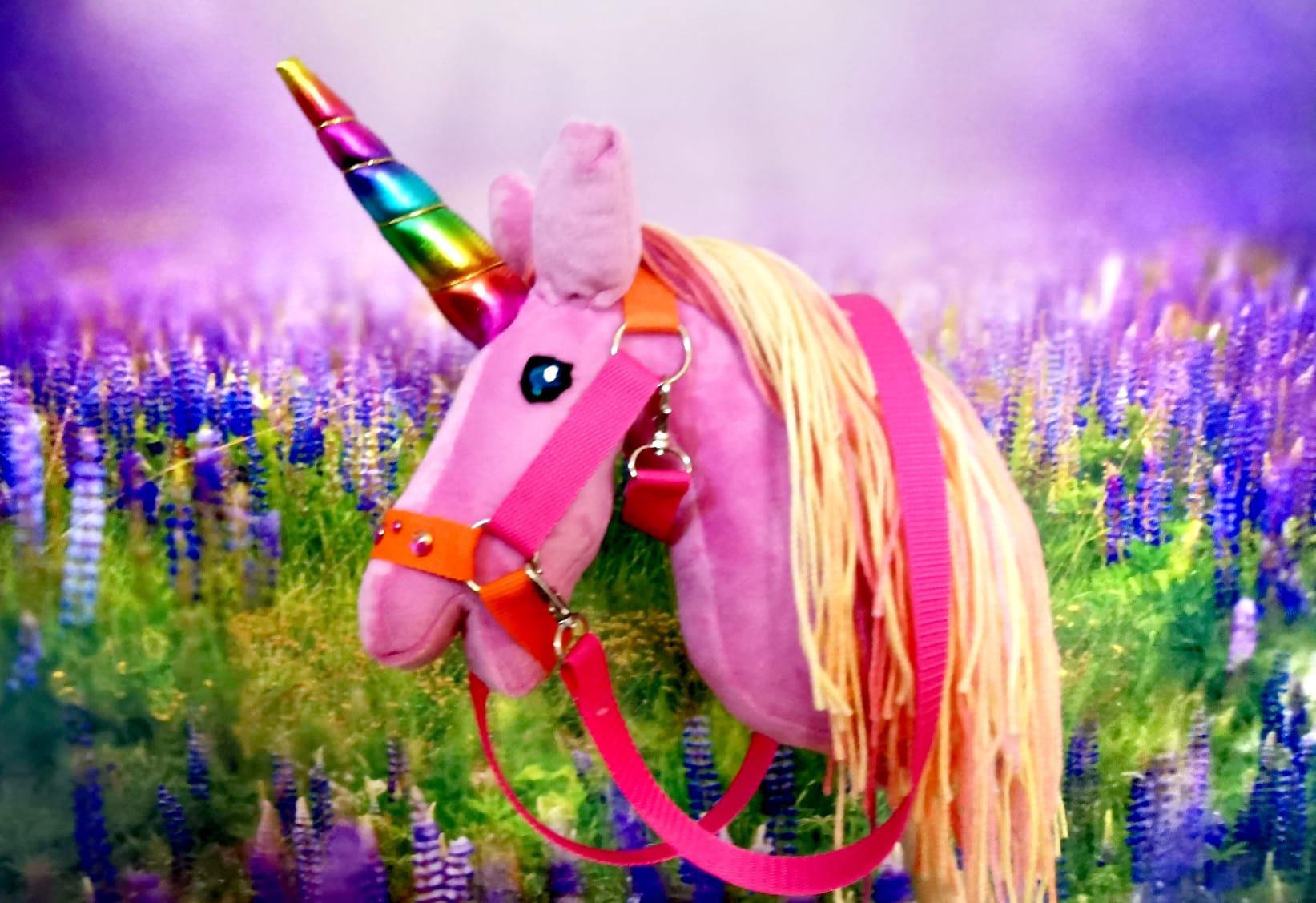 Konik jest już w komplecie z ogłowiem i wodzami tak jak na zdjęciu każdy jednorożec ma unikalny kolor ogłowia.